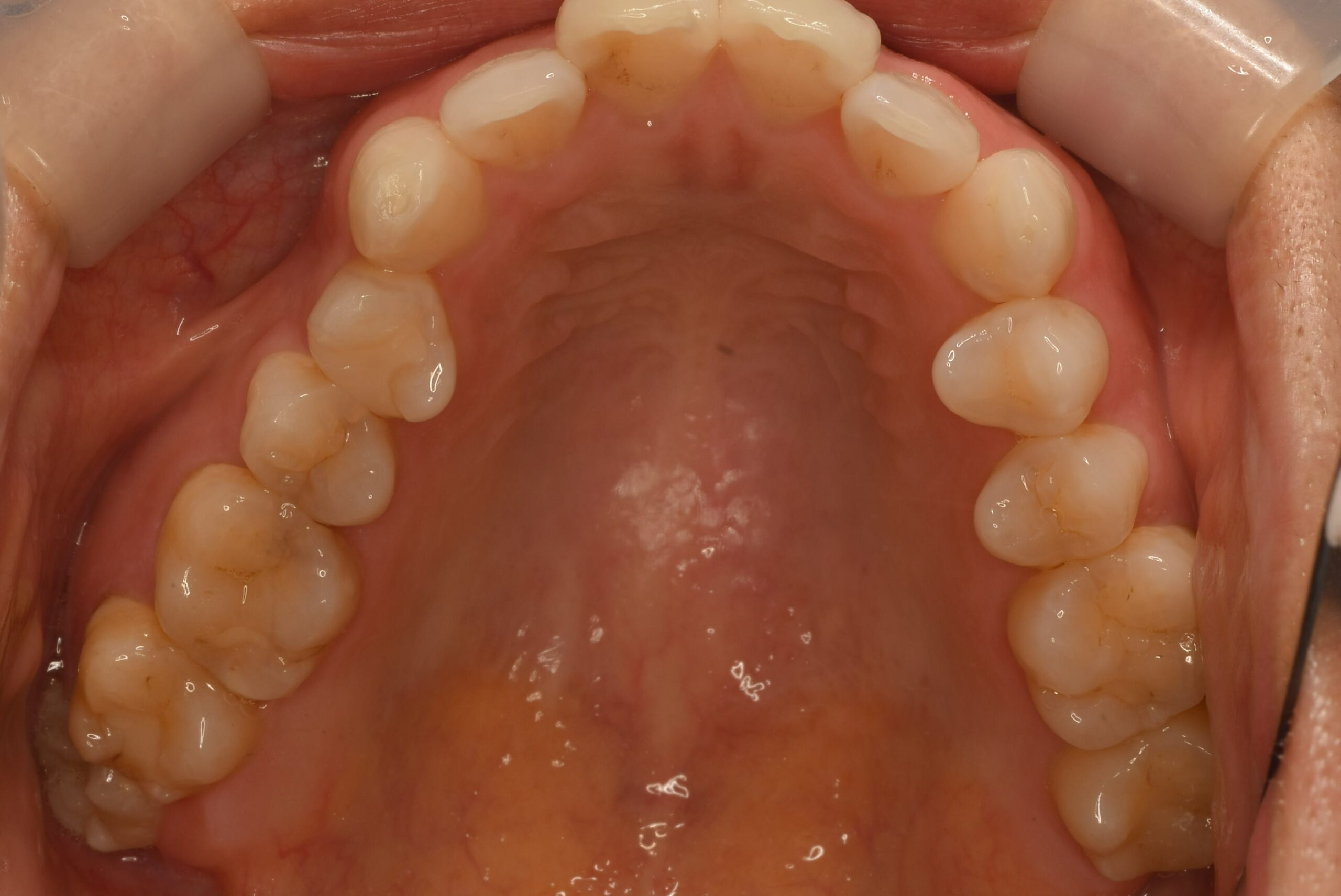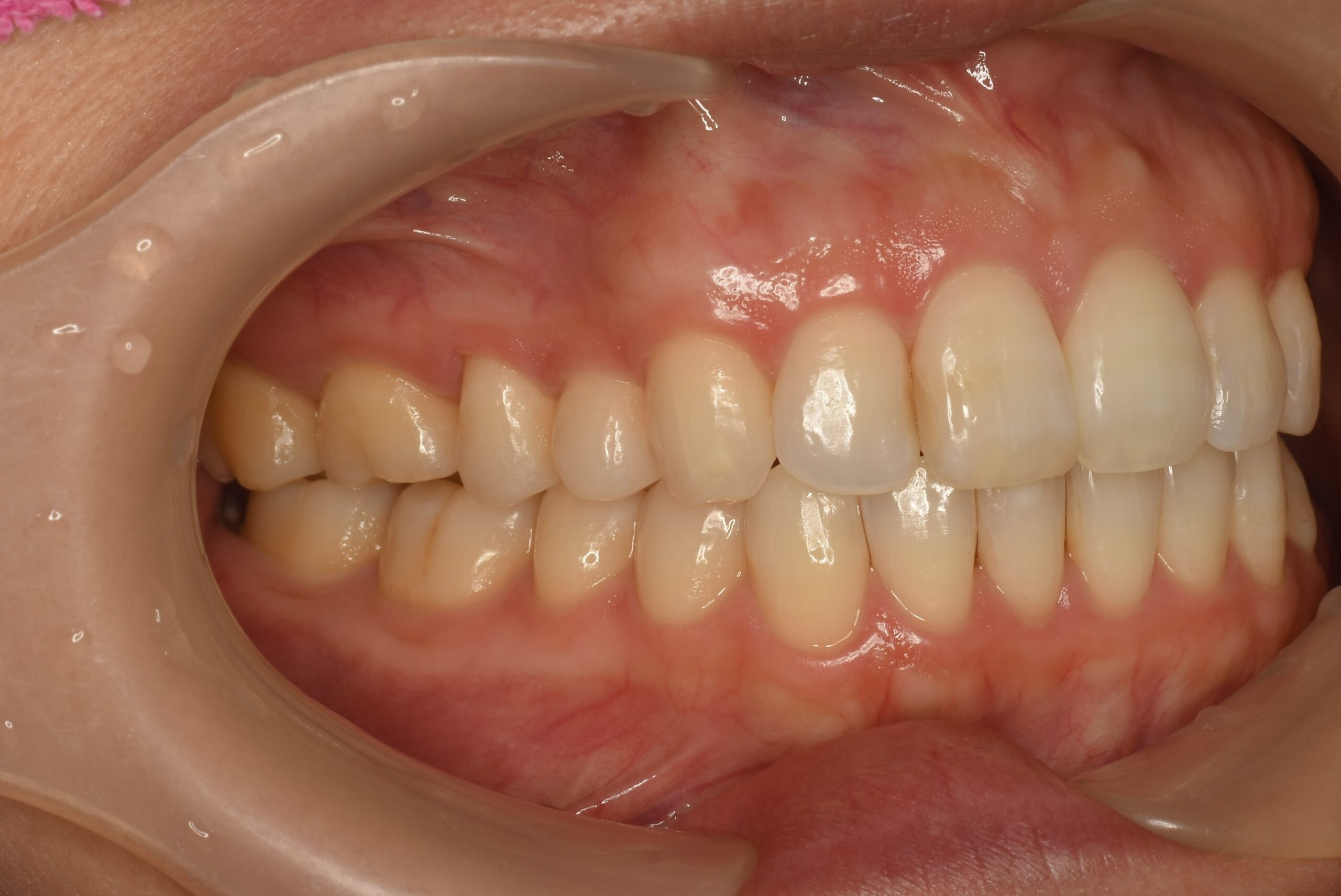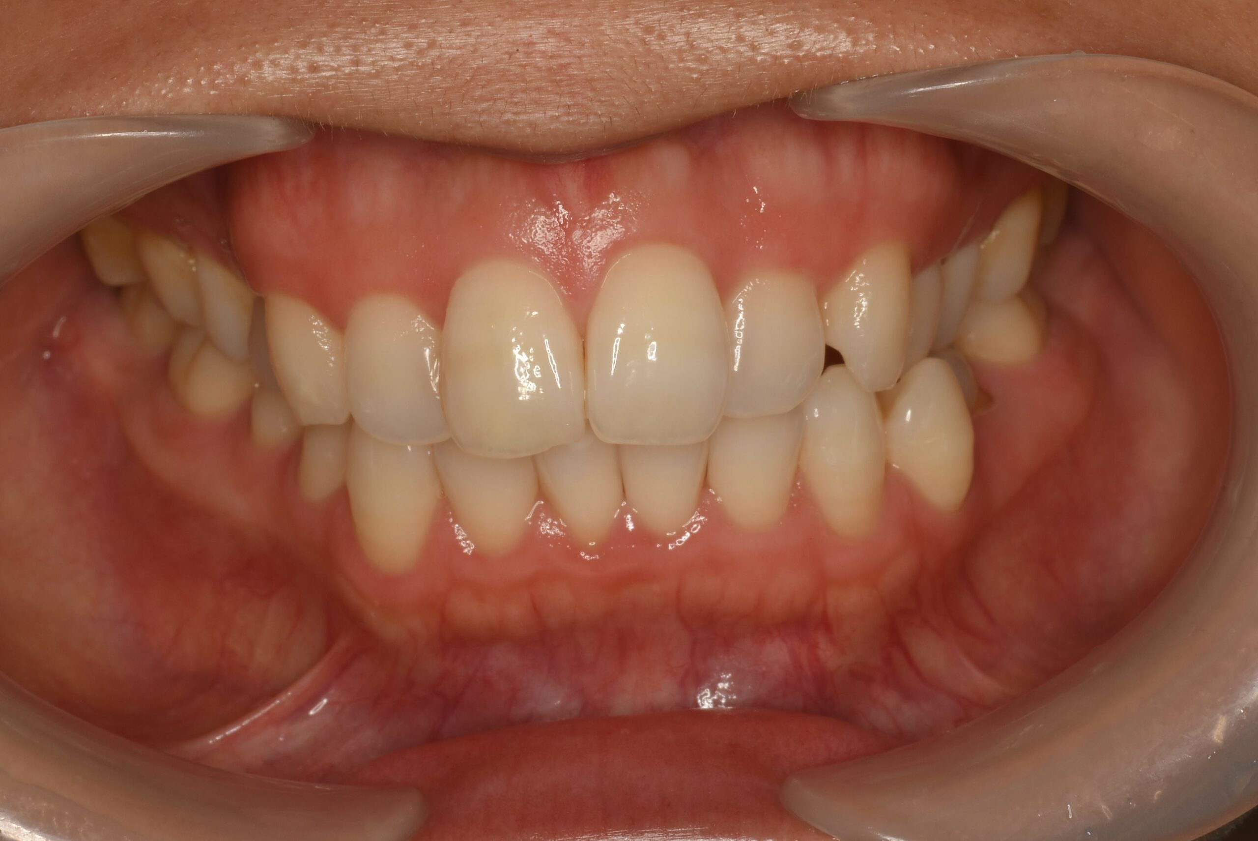 Case:前歯が噛んでいない。左側の臼歯のかみ合わせが反対になっている。