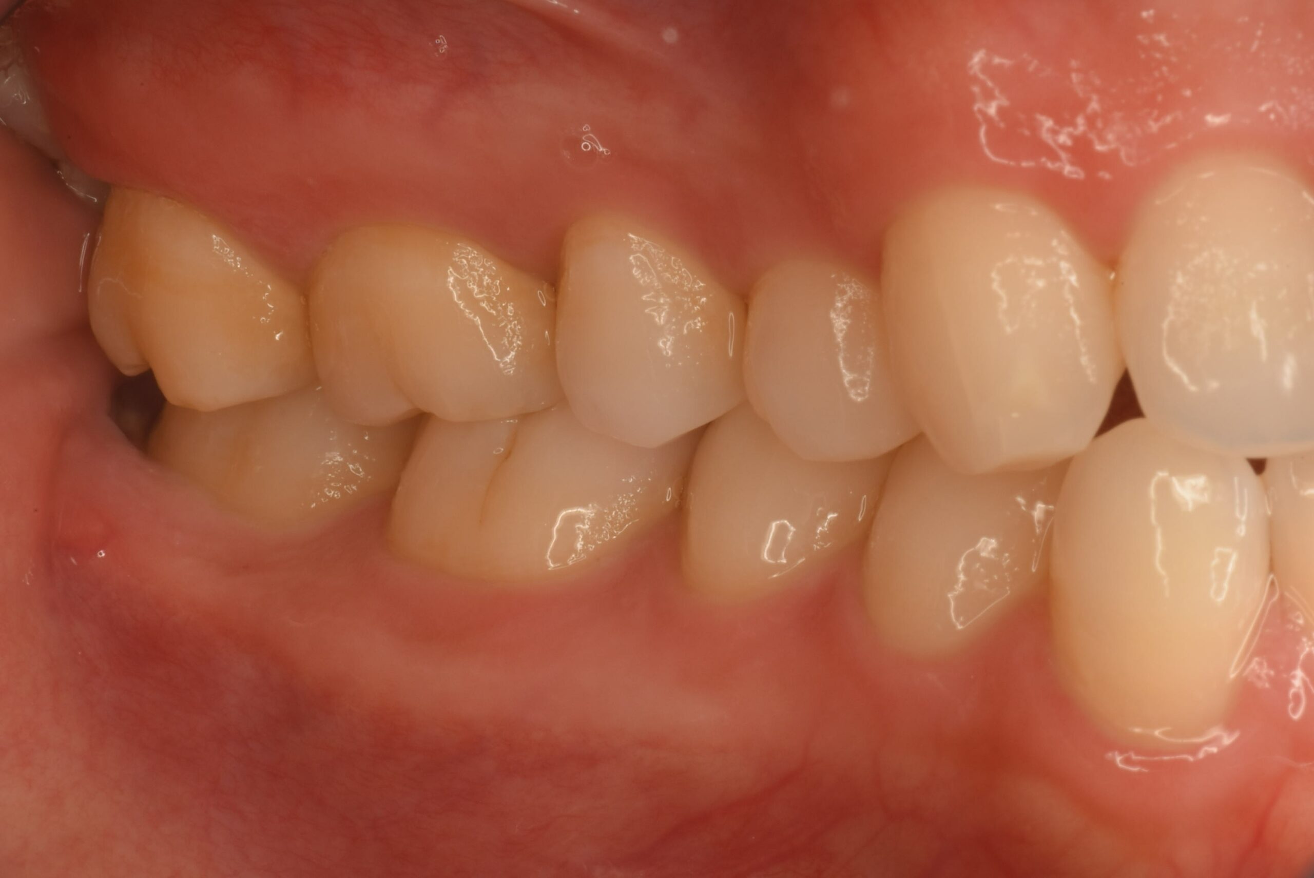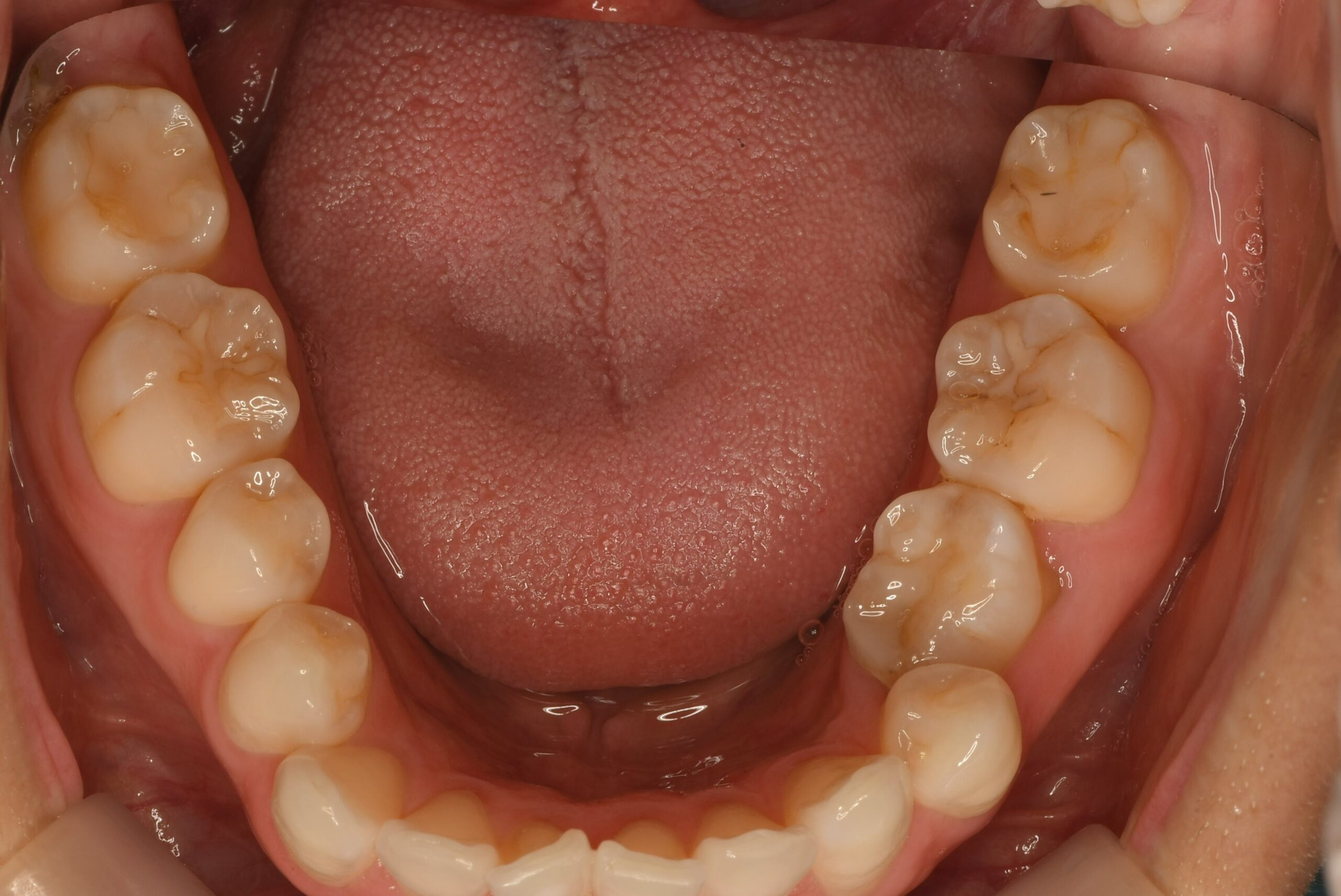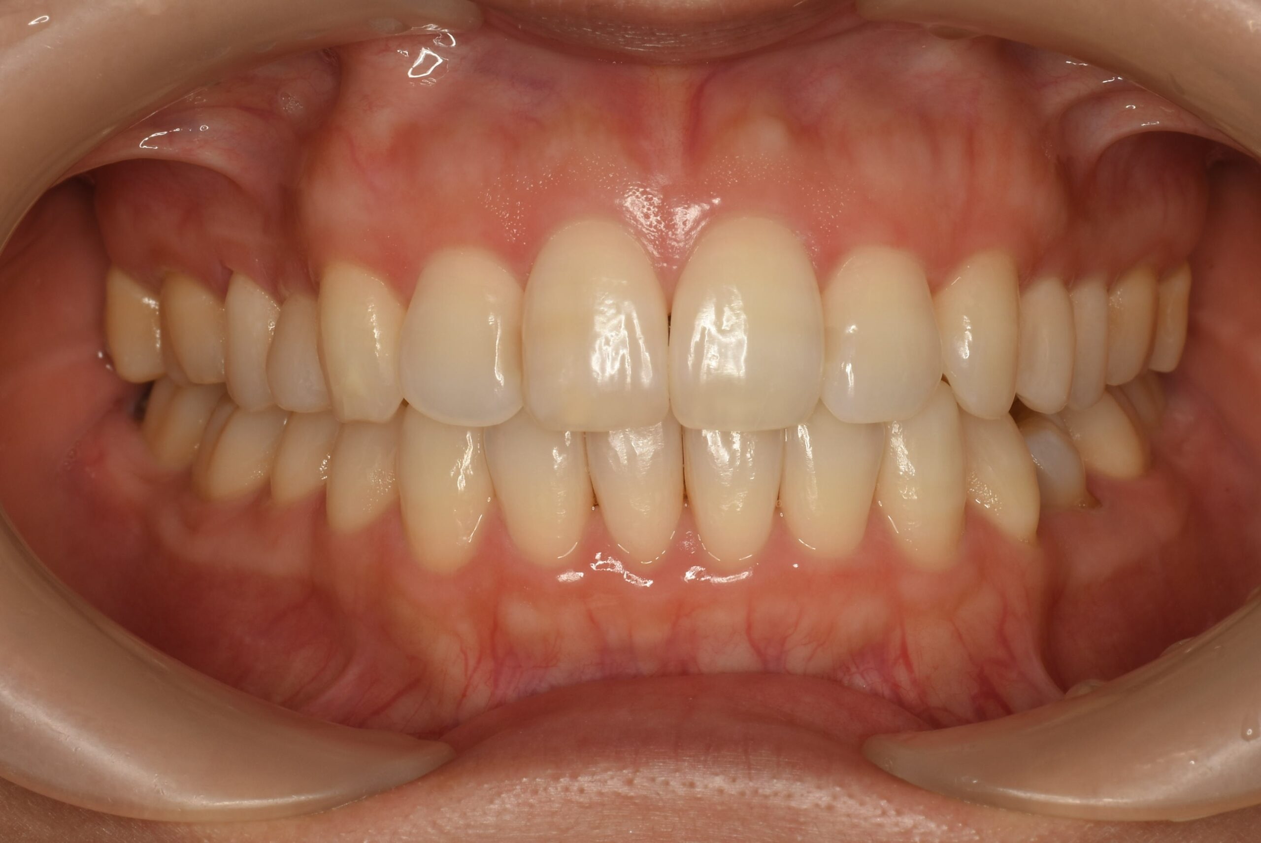 Case:前歯が噛んでいない。左側の臼歯のかみ合わせが反対になっている。